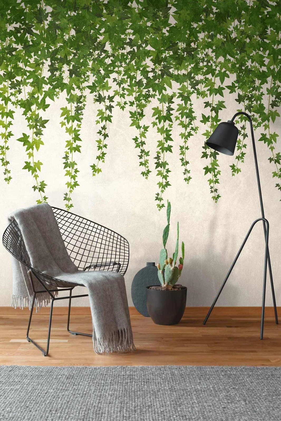 Digitaldruck mit herunterhängenden Kletterpflanzen in grau, grün – 38239-1 | 382391