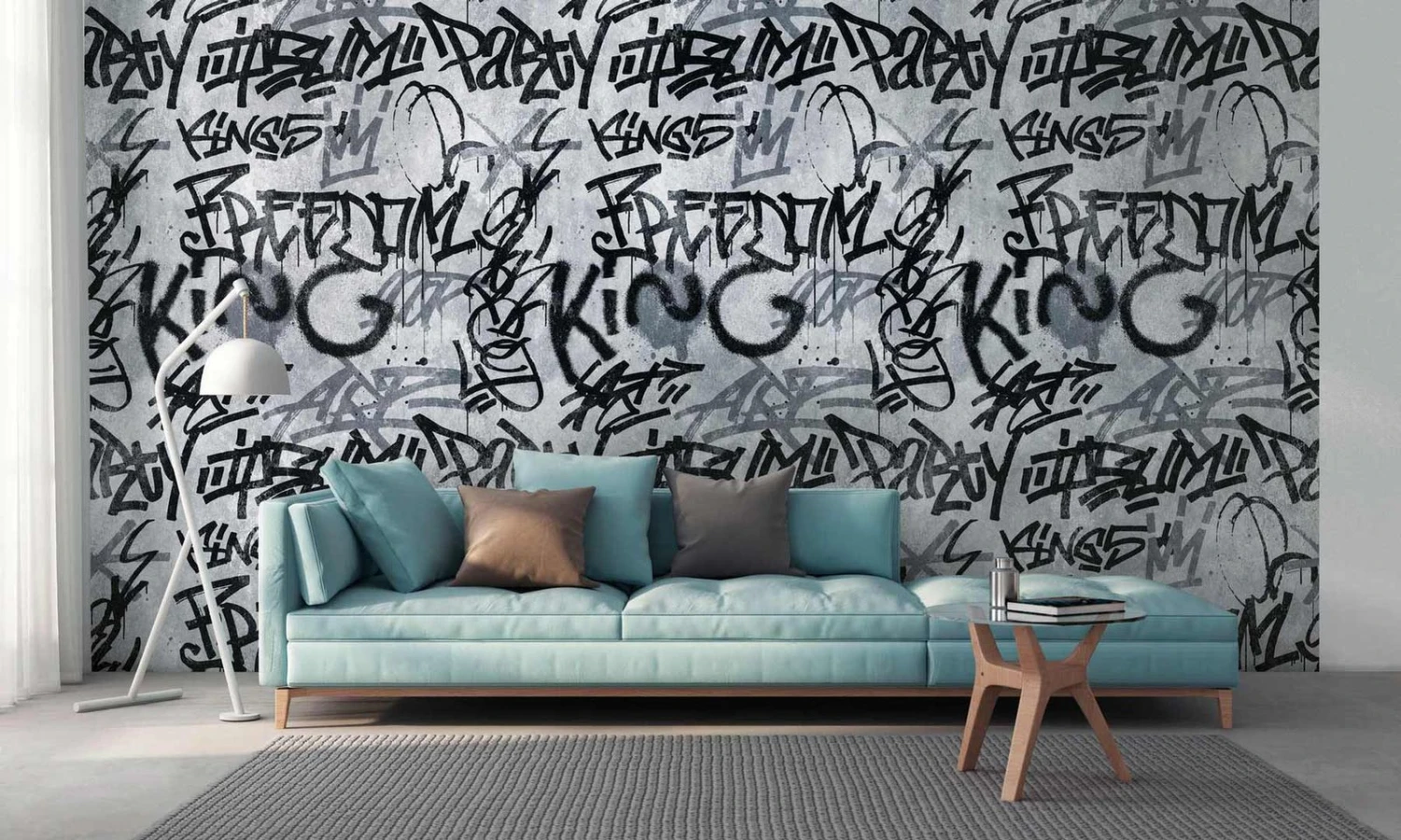 Digitaldruck mit Graffitis in grau, schwarz – 38251-1 | 382511