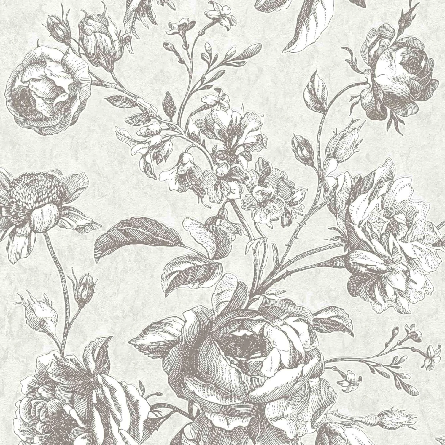 Tapete Vlies Floral Rosen grau weiß Romantic Home My Home My Spa livingwalls 38700-1 | 387001