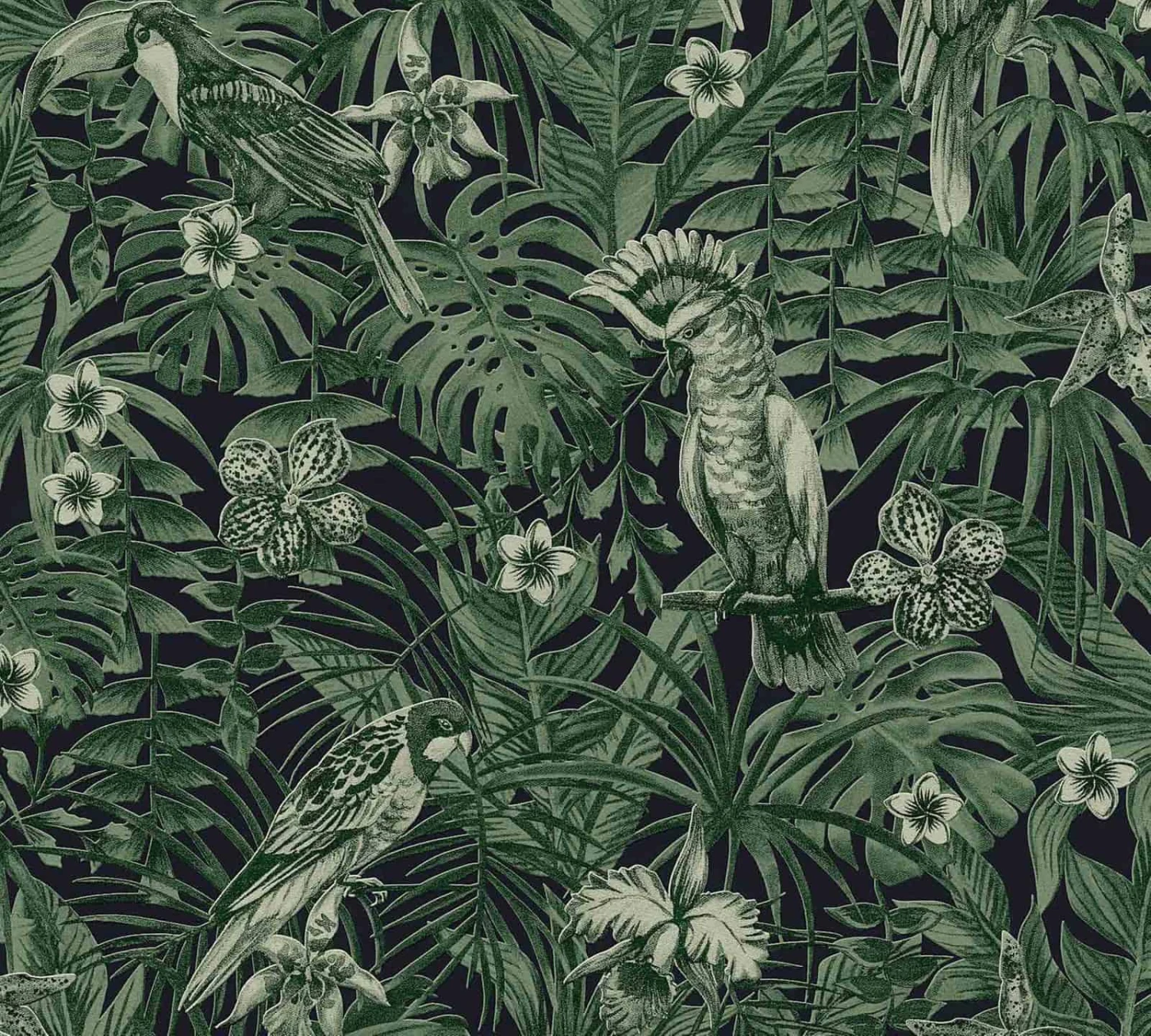 Tapete Vlies Vögel Dschungel schwarz grün AS Creation Greenery 37210-1 | 372101