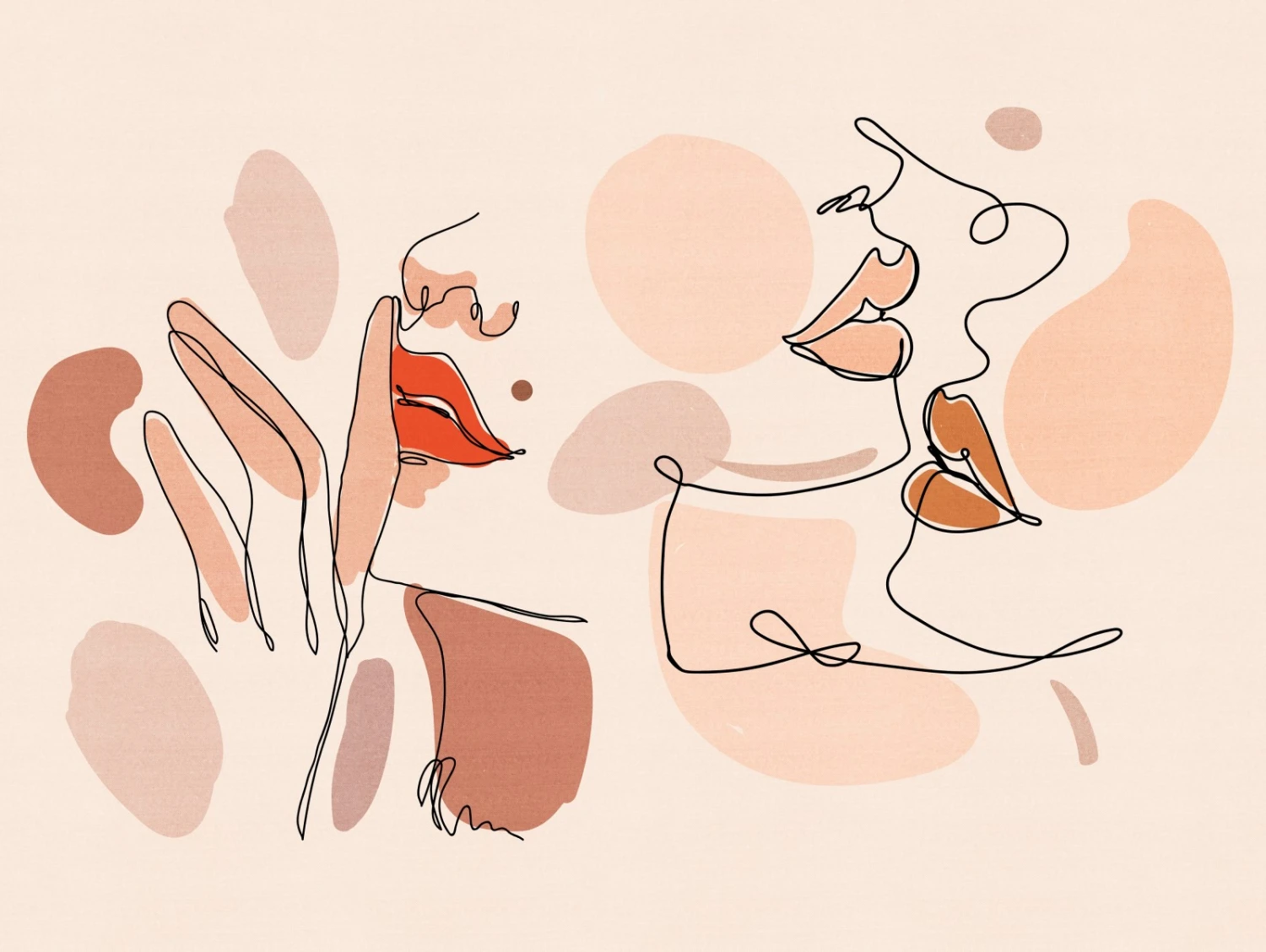 Digitaldruck Gesichter Gemalt Beige Rot Apricot ML2601