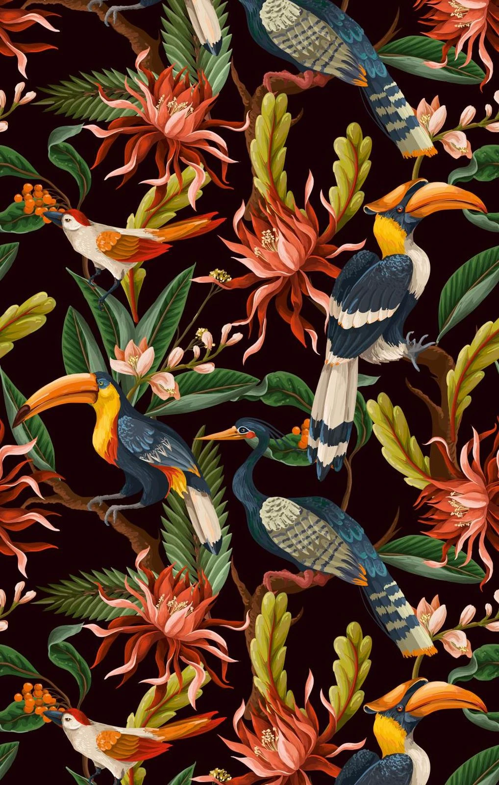 Fototapete floral Glööckler Tapete Vögel Pflanzen 33436