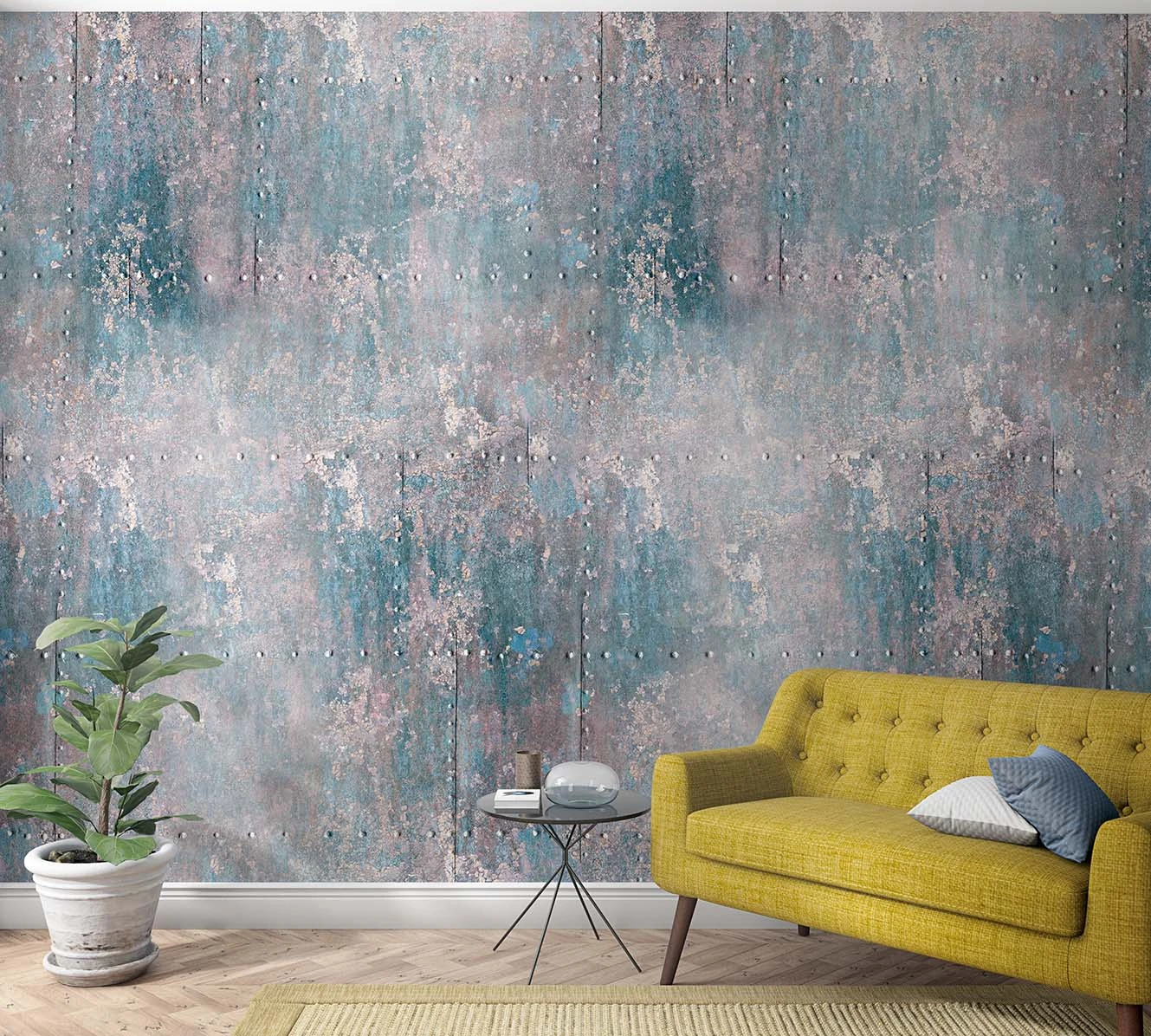 Fototapete Vlies Metall Nieten Industrial blau grau beige Smart Art Easy Marburg 47213