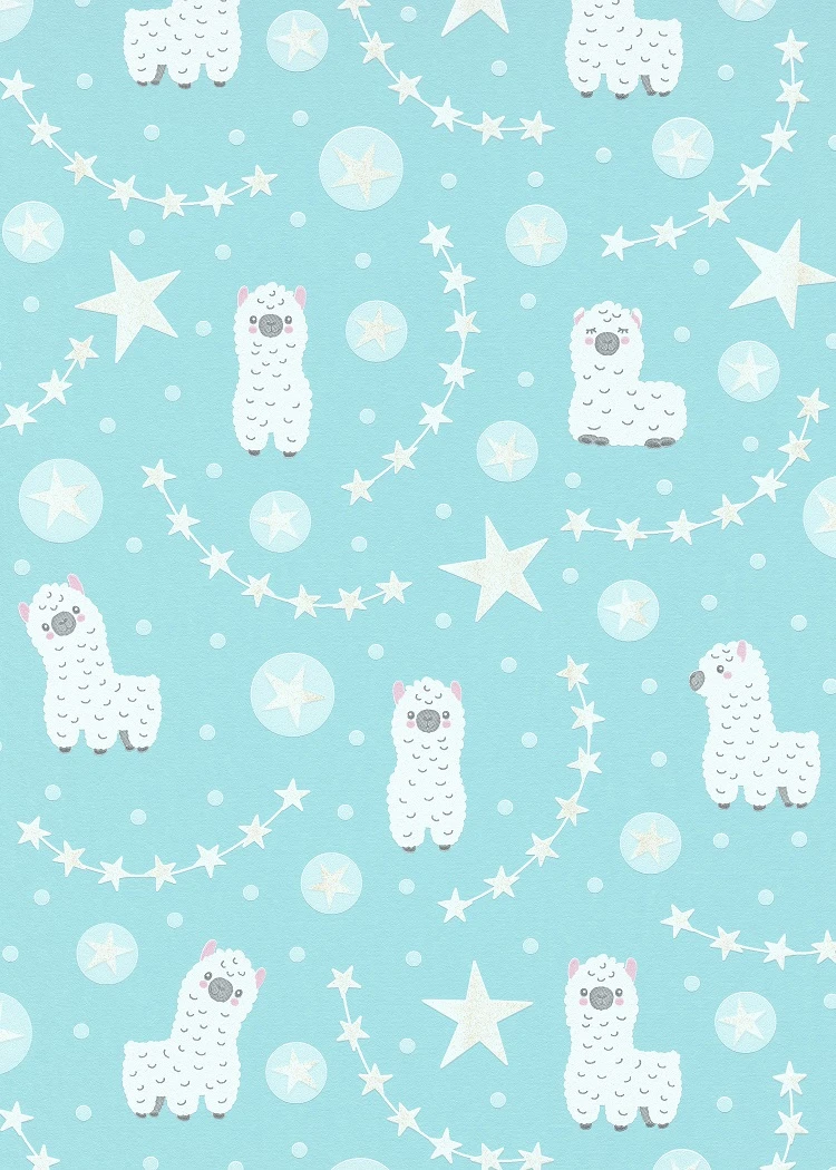 Kindertapete 10161-18 aus der Kollektion Sweet and Cool von Erismann mit Alpaka-Motiv in türkis mit Glitzer