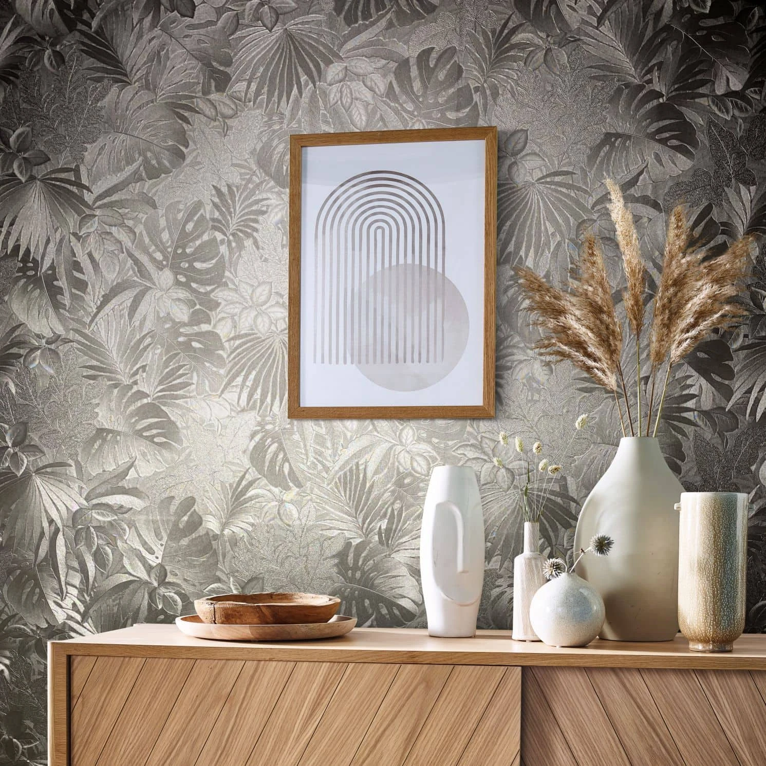 Die Tapeten aus der Kollektion Botanica von Marburg überzeugen mit ausdrucksstarken Designs aus der Natur und bringen mit ihren floralen Designs eine neue Frische in deinen Wohnraum. Die Vliestapete 33303 mit glänzenden Dschungelblättern in gold bringt dir den botanischen Garten direkt in dein eigenenes Wohnzimmer. So steht dem Abschalten vom Alltagsstress nichts mehr im Wege und du fühlst dich wie an deinem Lieblingsplatz im Garten.