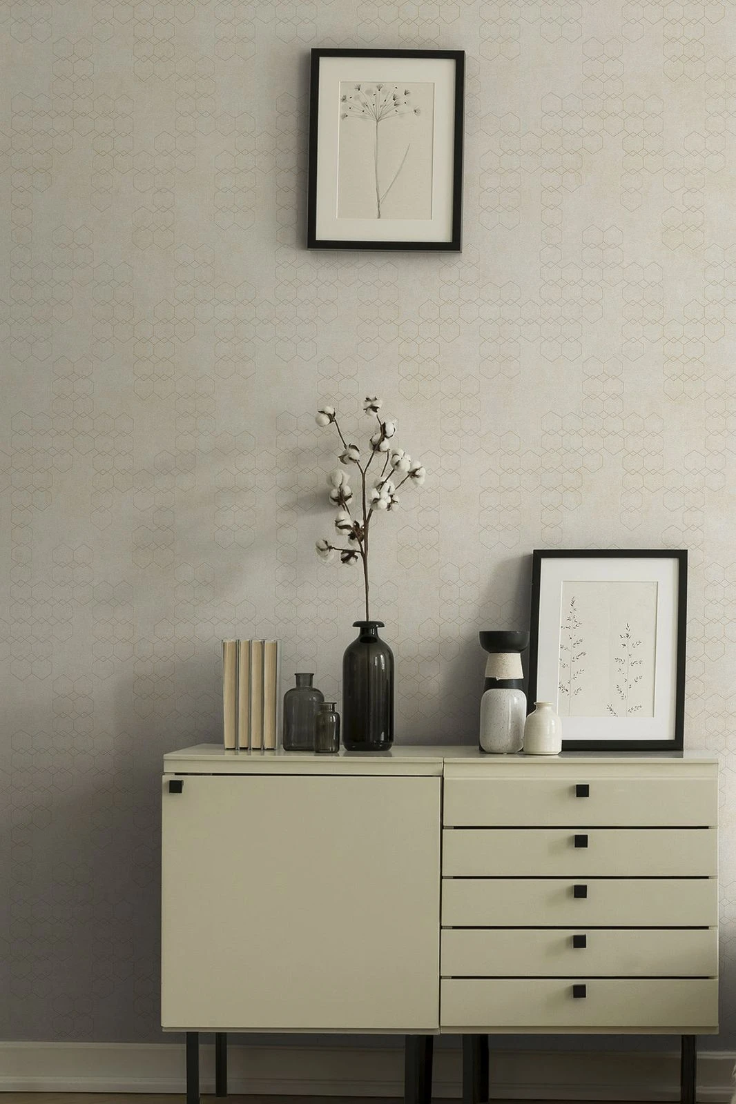 Tapete Vlies New Walls Grafisch Muster creme grau weiß Glanz 37424-1 | 374241 livingwalls