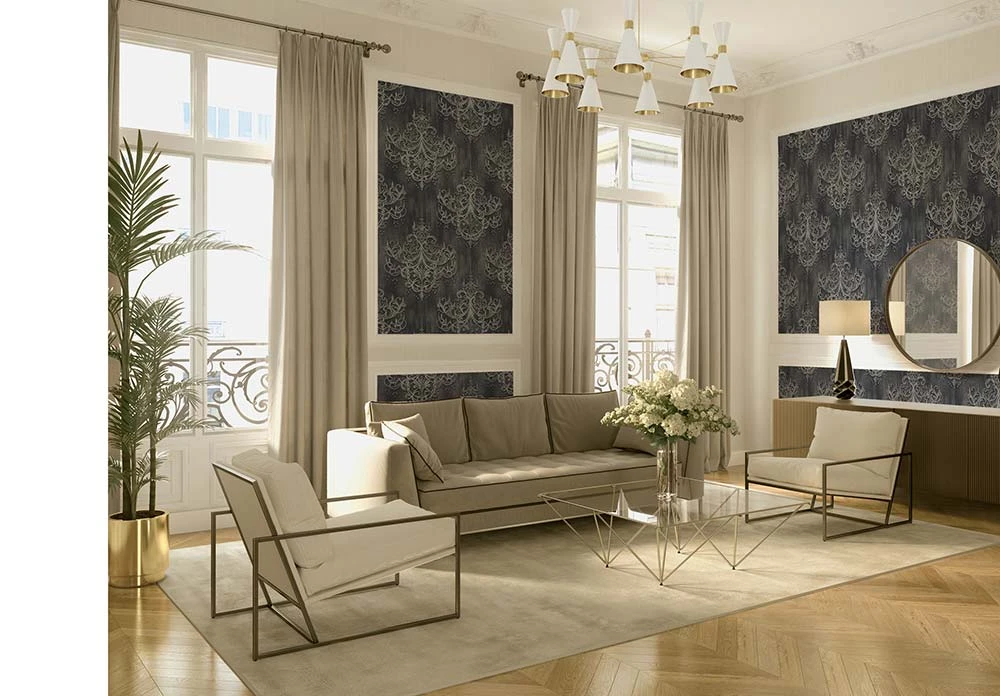 Tapete Vlies Ornamente Barock anthrazit gold Mata Hari Livingwalls 38096-4 | 380964
