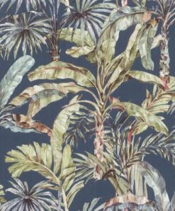 Tapete Vlies Rasch Botanisch Blätter Dschungel Palmen grün dunkelblau braun Florentine 485288
