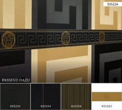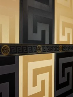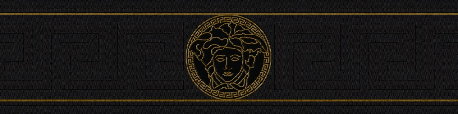 Die Einrichtungsmarke Versace Home steht für exklusives und hochwertiges Interiordesign. Dabei erfindet sich die Designermarke mit ihren glamourösen Kreationen immer wieder neu und setzt damit unangefochtene Maßstäbe im Einrichtungsbereich. Mit der dritten Auflage der erfolgreichen Versace Home Tapetenkollektion setzt die Luxusmarke erneut ausdrucksstarke Akzente im Wohnbereich. Inspiriert von Prunk und Eleganz sowie der griechischen Mythologie verzaubert Sie die Versace Tapetenborte 93522-4, aus der Themenreihe Greek, mit einem antiken Ambiente. Dieses Ambiente wird durch das kräftige Kolorit aus schwarz und gold Glanz sowie der aufregenden Rillenstruktur stilvoll in Szene gesetzt. Die Kombination aus Farbe und Struktur führt letztendlich dazu, dass die Medusa Kopf Abbildung mit griechischen Ornamenten zum Hauptaugenmerk Ihrer Wandgestaltung wird.
