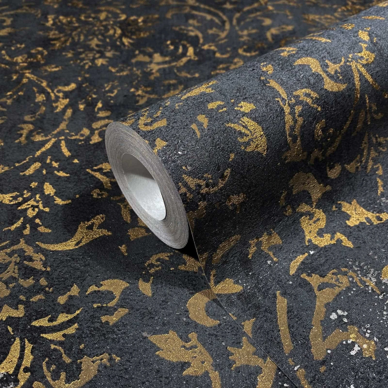 Hole dir mit den Tapeten der Kollektion City Glow von Marburg den Großstadtflair nach Hause. Die Tapeten zeigen unter anderem Blatt-, Damast- oder Wellenmuster, die gekonnt Glamour und Lässigkeit an deine Wände zaubern. Die Vliestapete 34297 zeigt ein Damastmotiv im Shabby-Look mit Metallic-Effekt in Gold auf einem Hintergrund in Betonoptik in schwarz. Überzeuge dich auch von den weiteren Tapeten der City Glow Kollektion von Marburg und entdecke die komplette Kollektion in unserem Shop.
